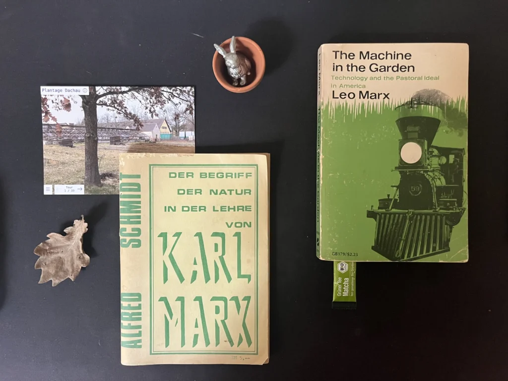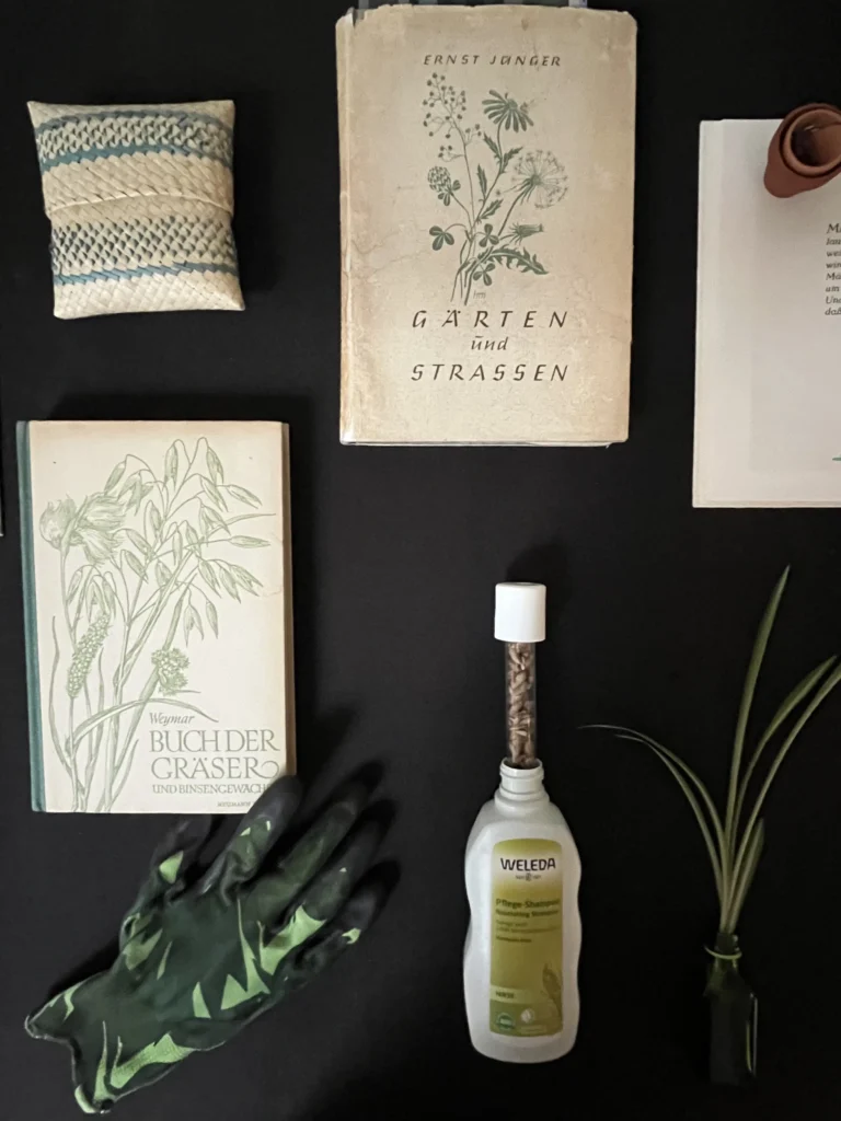 Seit März 2025 wird eine Vitrine im ZI als eine Art Hochbeet von Nanne Buurman (Forschungsgruppe Kunst, Umwelt, Ökologie) kuratorisch-forschend „begärtnert“. Fortlaufend neu arrangiert und ergänzt, entstehen in dieser experimentellen Versuchsanordnung im Laufe des Jahres immer wieder neue Konstellationen zwischen den ausgestellten Materialien, die saisonal jeweils andere inhaltliche und ästhetische Querverbindungen in Erscheinung treten lassen. Der prozessual und assoziativ angelegte visuelle Essay zu Ambivalenzen von Naturkonzeptionen und ökologischem Denken in Moderne und Gegenwart lädt zur Reflexion über romantisierende, biopolitische, völkische und ökonomische Dimensionen des Ökologischen in Kunst und Kultur ein.
